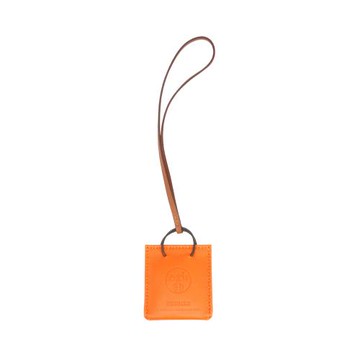 Hermes 立體紙袋造型小羊皮吊飾(橘)