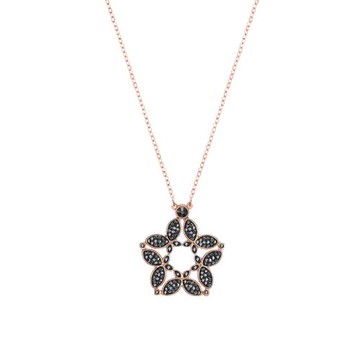 SWAROVSKI - 黑色鑲鑽花瓣項鍊 (金)