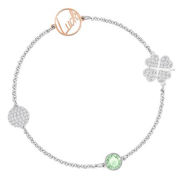 【SWAROVSKI】雙色鑲鑽幸運草隱藏式磁釦手鍊-銀色