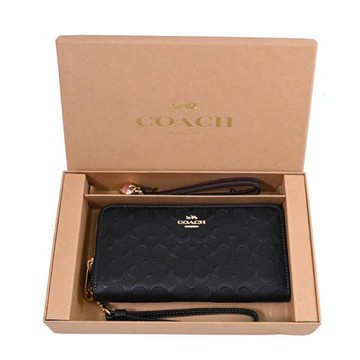 COACH CF464 立體壓紋ㄇ字拉鍊長夾/雙手掛帶禮盒組.黑