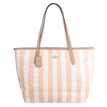 COACH CBI03 City 撞色條紋印花肩背托特包/購物包.褐色