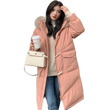 復古牛角包 超保暖90白鴨絨長款羽絨服