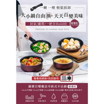 [鍋寶]百變魔法可拆式不沾鍋9件組-璀璨紅+贈強化玻璃鍋蓋