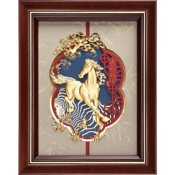 [開運陶源] 純金 金箔畫 博雅系列【馬到成功】..26 x33 cm