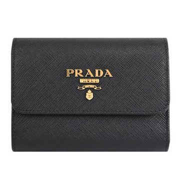 Prada 普拉達 Saffiano 皮革短款三摺疊搭扣錢包 1MH176 黑色-錢包