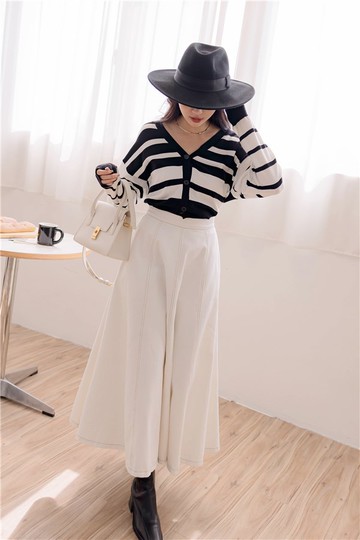 毛呢感坑條長裙