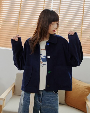 造型釦子廓形袖毛呢外套(兩色)