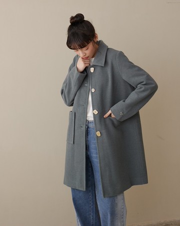 不對稱口袋造型長版大衣外套(兩色)