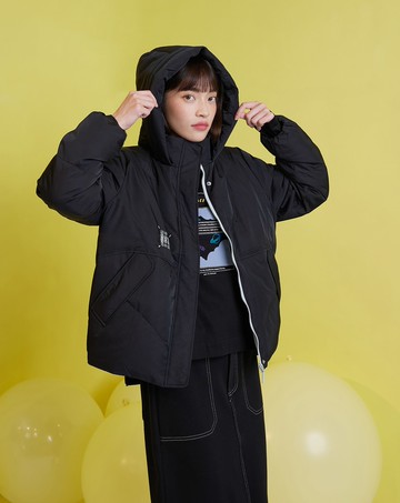 ➤刺繡配色壓紋連帽羽絨外套(三色)