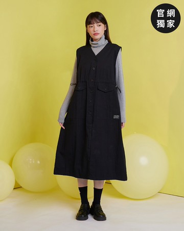 ➤抽繩V領開襟背心洋裝(兩色)
