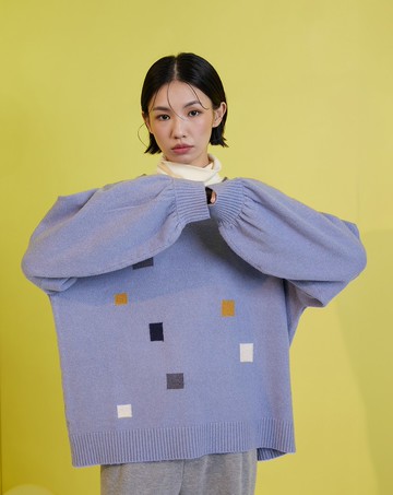 漂浮色塊羊毛落肩毛衣(兩色)