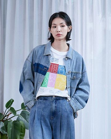 純棉寬版俐落剪裁抽鬚牛仔外套