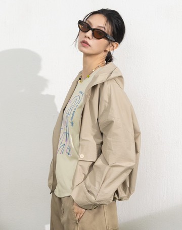 輕量連帽造型寬版防風外套 三色售