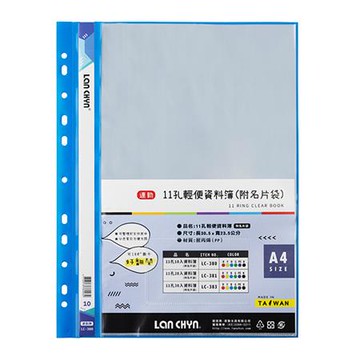 連勤LAN CHYN 11孔PP輕便資料簿/LC-381/20頁/附名片袋/藍