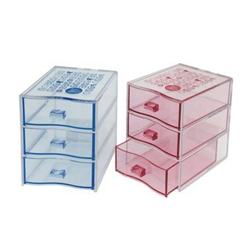 抽屜式收納盒 透明抽屜 桌面收納 3層 粉紅佳人 1個