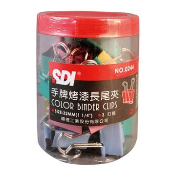 SDI彩色長尾夾0244T/32mm/36支/筒