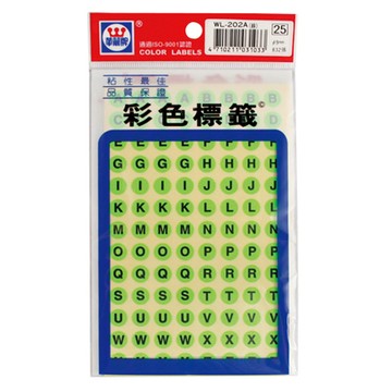 華麗牌英文-螢光圓形標籤WL-202AG/綠/9mm/832片/包