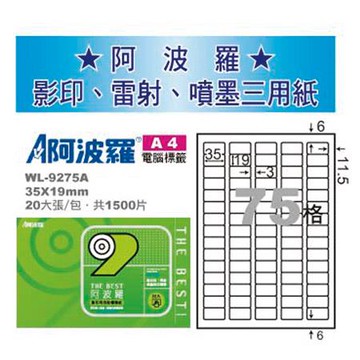 阿波羅三用列印電腦標籤/WL-9275A/A4/75格/20張/包
