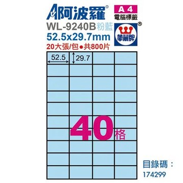 阿波羅三用列印電腦標籤/WL-9240B/粉藍/A4/40格/包