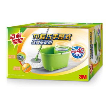 3M 百利 T0輕巧手壓式旋轉拖把組(手壓式脫水桶x1+拖把桿x1+布盤x1)_廠商直送