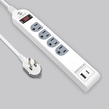 威電牌過載斷電延長線/CU3141C-04/3孔4座1切USB-C+USB-A/4尺