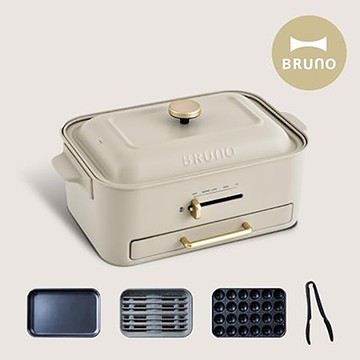 日本BRUNO無煙多功能電烤盤(接油盤設計.新款減煙烤盤.平面烤盤.章魚燒烤盤)/杏子灰/BOE109