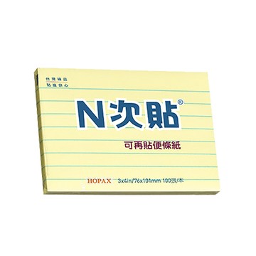 【N次貼】橫線型可再貼便條紙 76X127mm 黃 100張/本 61719
