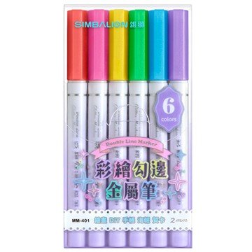 【SIMBALION 雄獅文具】彩繪勾邊 金屬筆 2mm 6色 /盒 MM-401