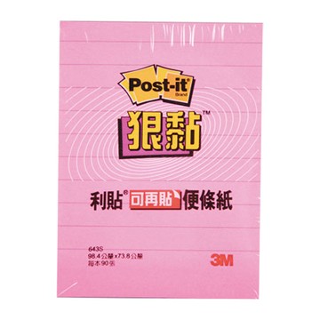 3M Post-it利貼狠黏橫格便條紙/643S-5/98.4x73.8mm/粉紅/90張/本