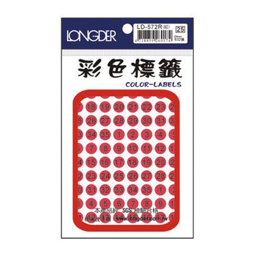 龍德LONGDER彩色標籤/LD-572R/螢光紅/直徑9mm/1~35