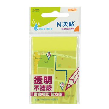 N次貼螢光透明便條紙66538/黃/76x51mm/50張/本