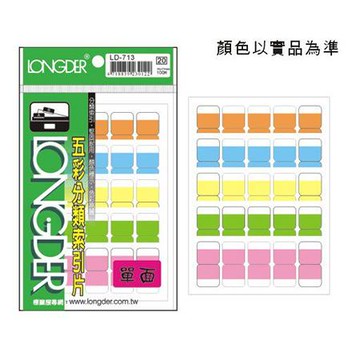 龍德 LD-713 單面五彩索引標籤/索引片 (20包/盒)