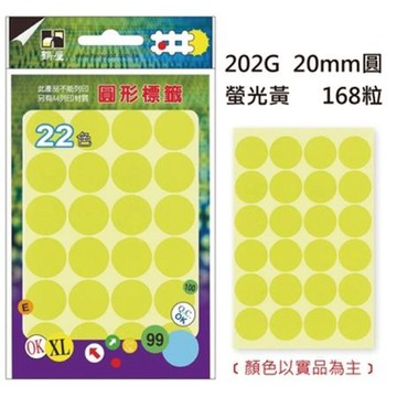 鶴屋圓形標籤202G/螢光黃/20mm/168粒/包