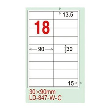 龍德三用列印電腦標籤/LD-847-W-C/白色/18格/20張/包