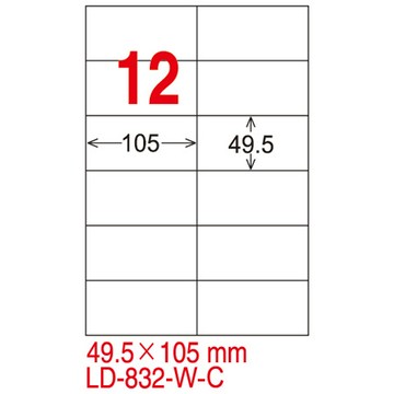 龍德三用列印電腦標籤/LD-832-W-C/白色/12格/20張/包