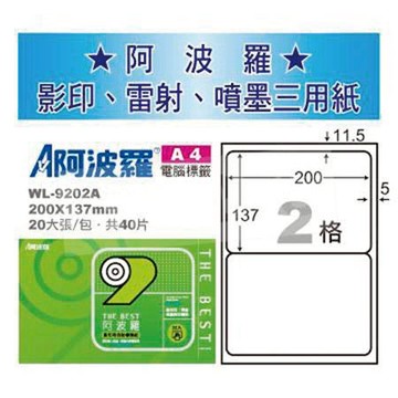 阿波羅三用列印電腦標籤/WL-9202/A4/2格/20張/包