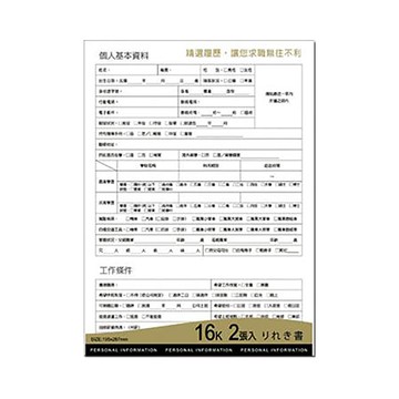 珠友CHU YU 16K精選履歷表/2入/PP-48009