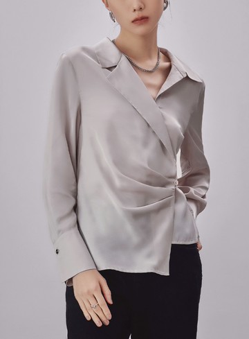 2024早秋新品北歐極簡質感褶皺泡泡衫顯瘦翻領單排扣長袖襯衣上衣