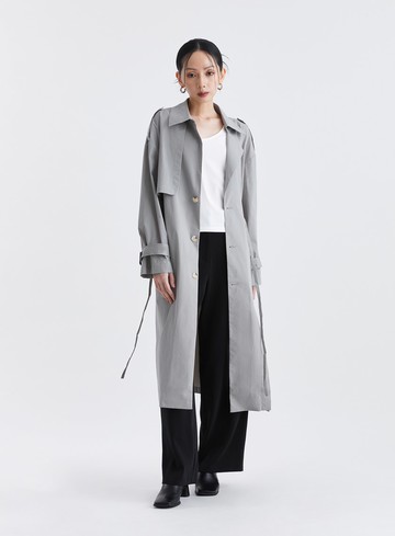 灰色長版風衣