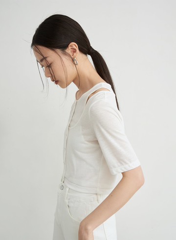HER SENSES/何識時裝半高領不規則露背短袖針織上衣 C047