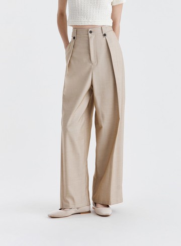 打褶造型斜紋彎刀褲