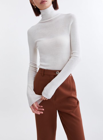 牧草綠半高領山羊絨羊毛合身九分袖毛衣多色訂做