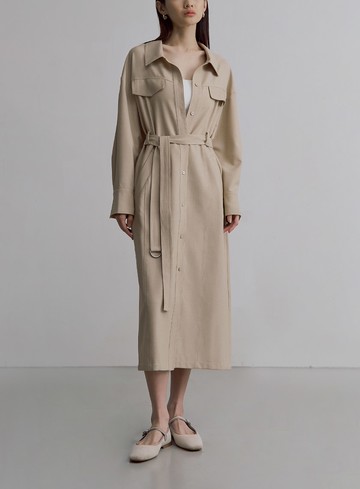 (S) anierk質感排扣收腰風衣杏色洋裝