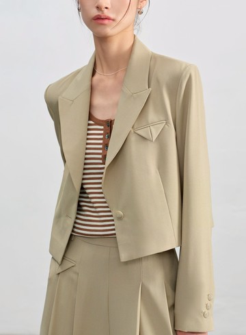 不對稱剪裁短版西裝外套