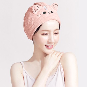 CB Japan 動物造型超細纖維乾髮帽 - 緞帶灰貓