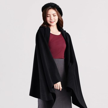 保暖.MIT永續環保材質-Fleece連帽斗篷圍巾