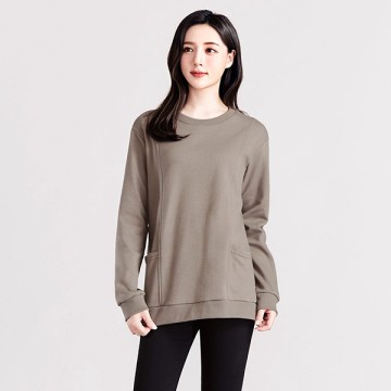 【好評延長350】保暖.MIT永續環保材質-圓領口袋刷毛長版上衣