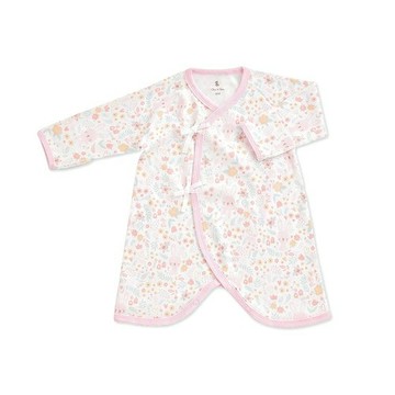 【Deux Filles有機棉】嬰兒長袖側開襟包屁衣/連身衣 粉花