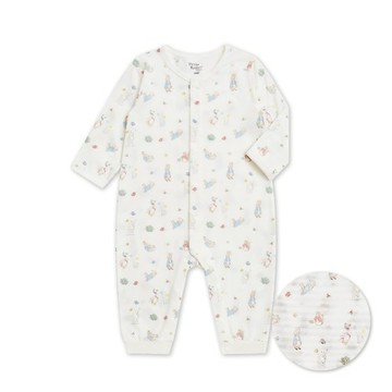 澳洲Purebaby有機棉嬰兒包腳連身衣/新生兒 包屁衣 粉藍兔