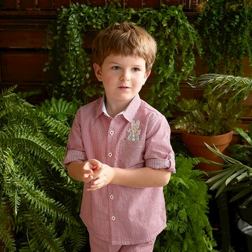 Charles系列小汽車白色長襯衫吊帶褲子組